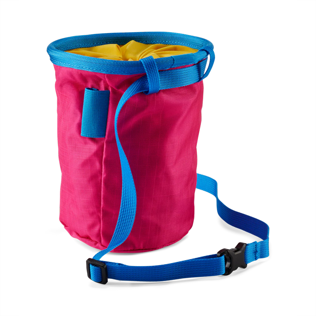 Whether you’re sending in the gym or working the moves of a tricky outdoor sequence, the Granite “Climbing on the Moon” Chalk Bag is robust enough for all your climbing needs. This eye-catching model revives our iconic Climbing on the Moon logo in a bold colourway. Made from recycled ROBIC® Star 210 fabric, this lightweight drawstring pouch is designed to follow your movements while climbing and compress down to easily stow with your other gear. The removable strap with quick-release buckle makes the bag easy to put on or take off, while an elastic holder keeps your brush to hand for scrubbing holds. For quick and colourful chalking up between moves, choose the Granite "Climbing on the Moon" Chalk Bag.