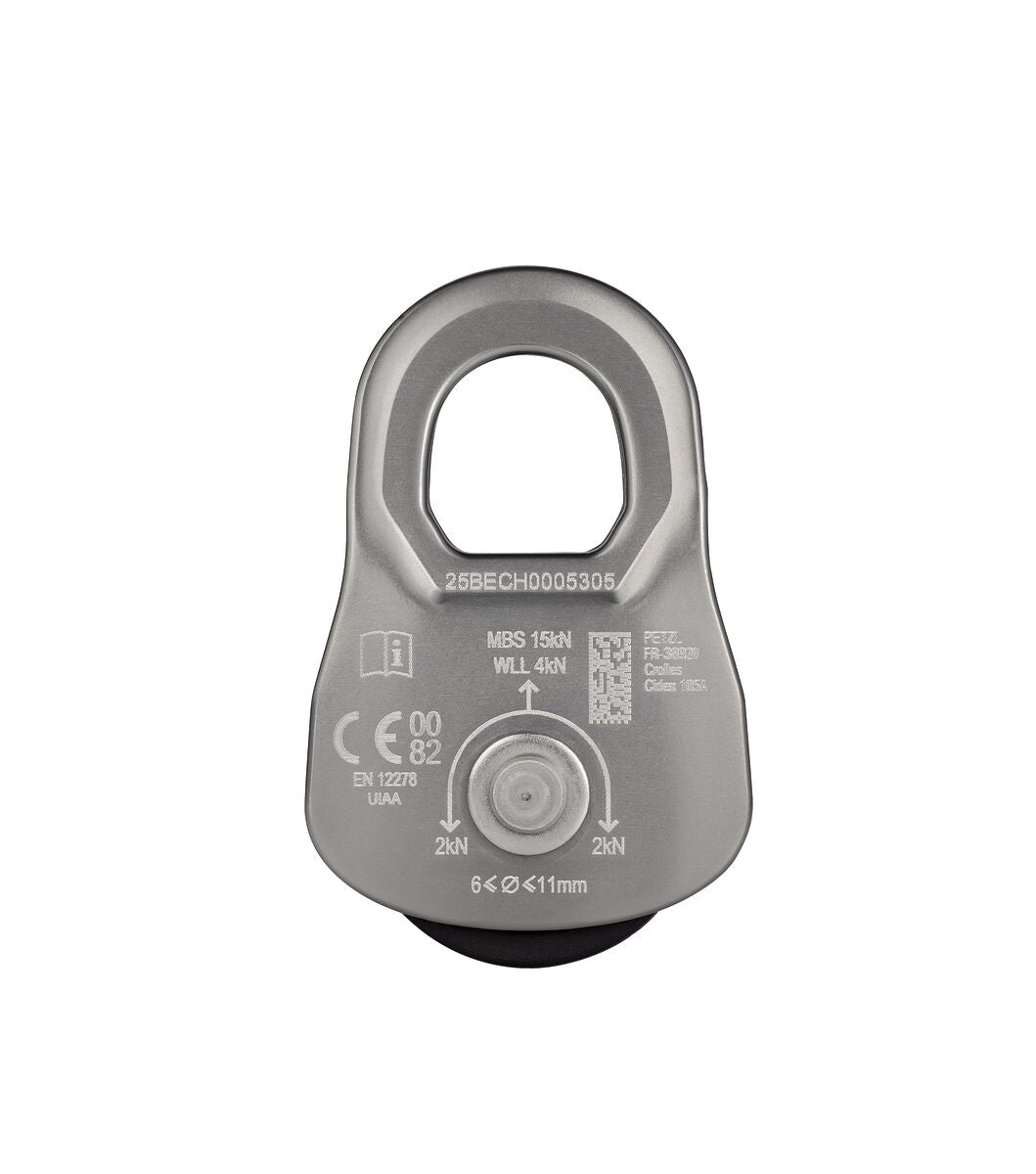 Lightweight and compact, the OSCILLANTE pulley can be used in crevasse rescue systems or improvised haul systems. Swinging side plates allow for easy setup.