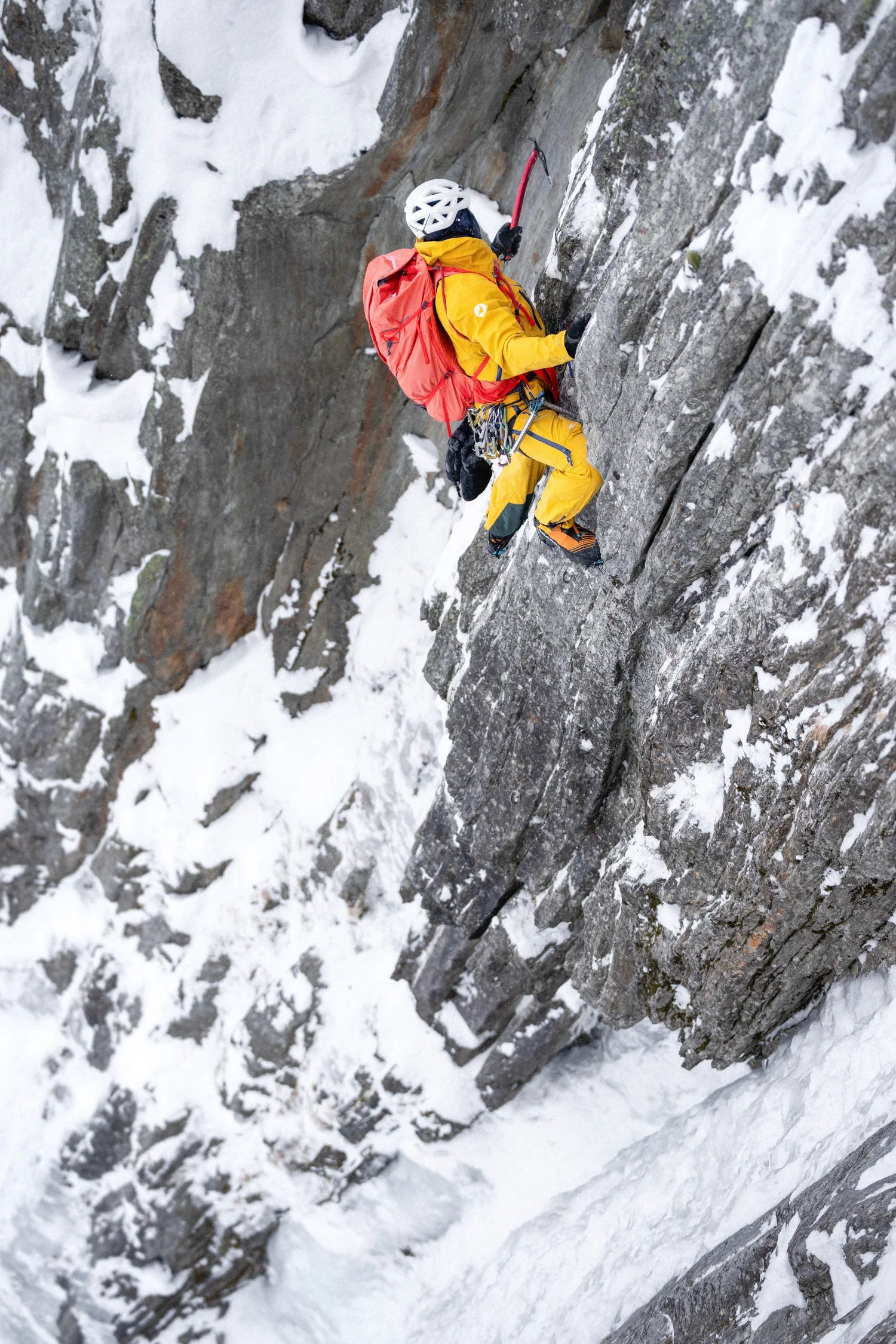 Originally designed for ice climbing with long approaches, this pack was optimized to be used as a big volume alpine climbing pack for all winter missions.